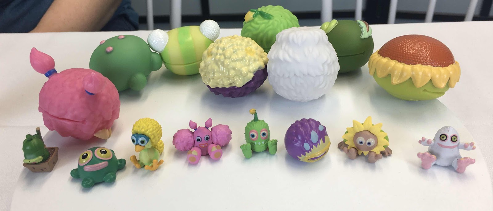The first wave has Baby Toe Jammer, Baby Dnadidoo, Baby Pompom, Baby Furcorn, Baby Maw, Baby Flowah, and Baby Mammott. They're are extremely tiny and can fit easily in your hand. They come with an egg you can also store them in. They don't make music, but they're really great if you want something to remind you of your favorite monster without taking up too much space.